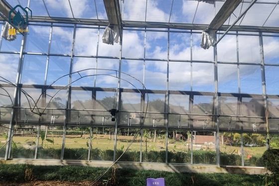 The Glass Multi-Span Greenhouse Structure For Agriculture High-Yield Production is designed to maximize daylight and cropping area for commercial growers. Built with galvanized steel arches and precision glass glazing, this agriculture glass greenhouse provides an even light profile and tightly controlled microclimate ideal for lettuce, herbs, and specialty vegetables. The modular multi-span layout supports scalable expansion and straightforward integration of irrigation and climate automation, while reinforced connections and engineered bracing deliver the durability needed for year-round production. This balance of light transmission, structural integrity and operational flexibility shortens crop cycles and raises per-hectare yield predictability.