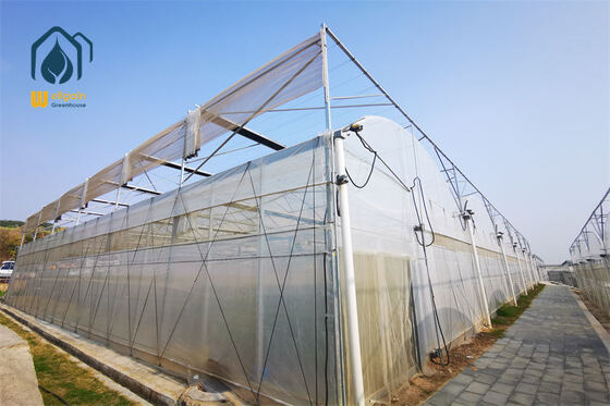 Multi-Span Plastic Greenhouse With Single Side / Double Side Motorized Roof Vents