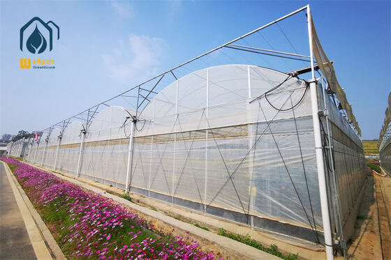 Multi-Span Plastic Greenhouse With Single Side / Double Side Motorized Roof Vents