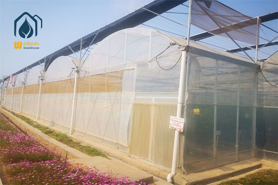 Multi-Span Plastic Greenhouse With Single Side / Double Side Motorized Roof Vents